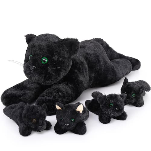 O MaoGoLan 5 peças de pelúcia de gato preto com 4 bebês dentro é o presente perfeito para amantes de gatos, mulheres, meninas e crianças. Este adorável conjunto inclui um grande gato de pelúcia preto de 50,8 cm com quatro gatinhos fofos e fofinhos escondidos dentro dela. Feito com materiais de alta qualidade, este gato de pelúcia é incrivelmente macio ao toque, proporcionando uma textura confortável e realista. A atenção aos detalhes no design captura a essência de um verdadeiro gato preto, tornando-o um companheiro ideal para entusiastas de gatos. O bicho de pelúcia gigante de gato preto serve como uma mãe amorosa para seus quatro bebês, criando uma cena emocionante que derreterá o coração de qualquer pessoa. Seja exibido em uma prateleira ou utilizado para brincadeiras imaginativas, este conjunto de pelúcia traz alegria e calor a qualquer cômodo. Com sua aparência fofa e adorável, a pelúcia MaoGoLan Black Cat é um item decorativo encantador ou um amado amigo de carinho. Seu tamanho e suavidade o tornam adequado para crianças e adultos. Perfeito como presente de aniversário ou feriado, este gato de pelúcia preto certamente será apreciado pelo destinatário. Satisfaça seu amor por gatos com este delicioso conjunto de bichos de pelúcia de gato preto. Com sua combinação de fofura, realismo e conforto, a pelúcia MaoGoLan Black Cat com 4 bebês dentro é um item essencial para qualquer amante de gatos. - MaoGoLan Brinquedos de gato preto de pelúcia com design autêntico exclusivo: nossos designers usaram o gato preto, um símbolo de boa sorte, como o protótipo deste adorável brinquedo de pelúcia da família de gatos pretos. Os amantes de gatos não devem perder esta série de coleção macia de gatos pretos para mãe e filho! - Material macio que não irrita a pele: nossa pelúcia gigante de gato preto é feita de poliéster de alta qualidade, oferecendo uma textura confortável e realista. Material amigo da pele, você não precisa se preocupar com o material causando um efeito ruim na pele do seu filho. O toque super macio é adequado para abraçar e inclinar, sinta-se à vontade para deixar seu filho abraçar nossos brinquedos fofos de gato preto para dormir! - Companheirismo é o melhor presente: seja uma criança ou um adulto, eles vão adorar este brinquedo de pelúcia da série de gatos pretos fofos e fofinhos. Divirta-se juntos, compartilhe felicidade e segredos. Nossos adoráveis animais de pelúcia grandes para mãe e criança são o presente perfeito para qualquer feriado ou qualquer ocasião. Seria ótimo compartilhar a alegria e o calor com os outros! - Decorativo e funcional: esta pelúcia de gato preto não é apenas uma companhia fofa e fofa, mas também serve como decoração, adicionando um toque de capricho e charme a qualquer cômodo. - Brinquedos educativos: este bicho de pelúcia de gato preto não é apenas adorável e divertido, mas também serve como um brinquedo educativo, ensinando as crianças sobre a única e fascinante espécie de gato preto.