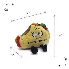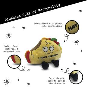 - PELÚCIAS ENGRAÇADAS — A Taco Punchkin traz risadas com seu trocadilho bordado: “ODEIO TERÇAS-FEIRAS”. Uma pelúcia positiva, feita com tecido supermacio com expressões bordadas e piadas, perfeita para sorrir e se divertir.