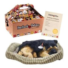 Os filhotes de cães Perfect Petzzz são tão parecidos com um de estimação que todos irão se surpreender e se encantar. Estes dorminhocos respiram com sutileza como se fossem de verdade. Há até um ligeiro som de ronco. Eles são muito bem comportados, e além de um perfeito bichinho de estimação para a criança, faz uma aconchegante companhia em qualquer casa, escritório, dormitório ou lar. Não requer veterinário, ração e nem passeios.