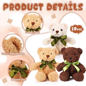- Fácil de transportar e compartilhar: este adorável urso pequeno é embalado com pele macia, nariz costurado à mão e arco de cetim; Este urso é um adorável companheiro para você ir à escola, trabalho ou viagem; é também o brinquedo de descompressão engraçado para o quarto e escritório