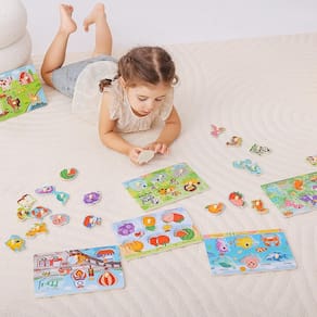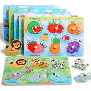 Crianças e crianças em idade pré-escolar vão adorar brincar com o brinquedo de quebra-cabeça infantil de madeira! Este conjunto de seis quebra-cabeças de aprendizagem Montessori é perfeito para crianças de 1 a 3 anos de idade. Os quebra-cabeças são projetados para estimular o desenvolvimento cognitivo, habilidades motoras finas e habilidades de resolução de problemas. Os quebra-cabeças vêm em seis temas diferentes: frutas, dinossauros, animais, fazenda, criaturas marinhas e transporte. Cada tema tem seu próprio conjunto exclusivo de peças de quebra-cabeça que as crianças podem montar em uma imagem completa. Esta variedade garante que as crianças nunca ficarão entediadas e sempre terão algo novo para explorar e aprender. - Quebra-cabeça de madeira para crianças: o pacote vem com seis peças de quebra-cabeças de aprendizagem Montessori, esses quebra-cabeças são projetados com vários temas, como frutas, dinossauros, animais, fazenda, criaturas marinhas e transporte, que estimulam a curiosidade e a imaginação das crianças. - Tamanho portátil: as peças do quebra-cabeça são fáceis de segurar, o que o torna adequado até mesmo para as crianças mais novas. Este brinquedo de quebra-cabeça também é mais portátil do que outros, facilitando o transporte em viagens ou visitas à família e amigos. - Seguro e sólido: o material de madeira utilizado na construção deste brinquedo garante durabilidade e segurança para os jovens. As bordas são lisas e não tóxicas, garantindo que as crianças possam brincar com segurança sem preocupações. Nossos quebra-cabeças de brinquedo também passaram nos testes da American Toy Association, eliminando quaisquer problemas de segurança. - Aprendizagem pré-escolar: este quebra-cabeça de brinquedo não é apenas um jogo de quebra-cabeça, mas também uma ferramenta educacional que introduz as crianças a diferentes conceitos por meio de experiências visuais e táteis. Como eles combinam os pinos com os orifícios correspondentes, eles aprendem sobre formas, cores e tamanhos. Os diferentes temas oferecem uma ampla variedade de oportunidades de aprendizagem, permitindo que as crianças explorem diferentes tópicos e desenvolvam uma ampla variedade de interesses. - Escolha de presente: para presentes de aniversário ou Natal, este conjunto de quebra-cabeça infantil de madeira é uma ótima escolha para meninas e meninos. É um presente atencioso que não apenas traz alegria e entretenimento, mas também promove o desenvolvimento cognitivo e o aprendizado. O brinquedo certamente se tornará um favorito entre crianças e pais.