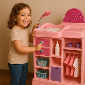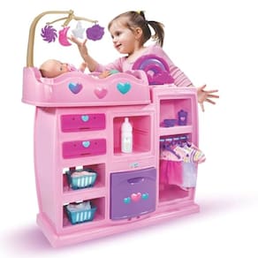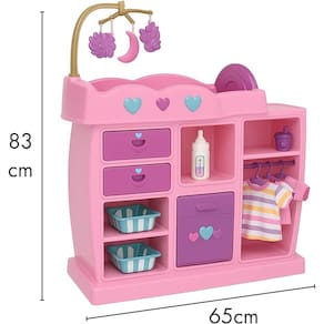 Quarto de Boneca Dos Sonhos 2 em 1 Berço com Roupeiro e Banheira com Ducha - Magic Toys 8104 Esse brinquedo incrível da Magic Toys é perfeito para cuidar das bonecas com muito amor! Ele pode ser utilizado como berço ou banheira — a brincadeira fica ainda mais real! Com aproximadamente 85 cm de altura, é o brinquedo ideal pra desenvolver o cuidado e a imaginação dos pequenos! Acompanha: 01 Duchinha funcional 01 Saboneteira 01 Sabonete 01 Berço/Banheira 01 Móbile 4 Cabides 01 Colher 01 Pratinho 01 Copinho 01 Mamadeira MEDIDAS APROXIMADAS: 30 cm x 60 cm x 60 cm OBS: Imagem meramente ilustrativa. A boneca não acompanha o produto.