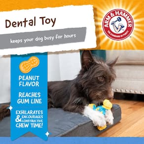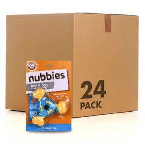 Arm & Hammer Brinquedo odontológico para cães Nubbies TriBone para cães para mastigar moderadamente, ajuda a reduzir a placa bacteriana e tártaro sabor da manteiga de amendoim bicarbonato de sódio - Brinquedo de mastigar para cães para mastigadores moderados – O bicarbonato de sódio Nubbies Arm & Hammer é um brinquedo durável para cães mastigadores leves a moderados - Porcas e ranhuras ajudam a esfregar para o controle do tártaro – Os sulcos de esfregar do brinquedo do cão ajudam a remover o tártaro e a placa acumulada nos dentes do seu cão sem escovar - ARM & HAMMER Bicarbonato de sódio – Este brinquedo para cães é infundido com o ingrediente de bicarbonato de sódio da Arm & Hammer para desodorizar naturalmente o mau hálito do cão - Brinquedo dentário de nylon durável para cães – Este brinquedo dental para cães é feito com nylon e TPR para maior durabilidade, permanecendo forte enquanto o seu cão mastiga - Formato triplo divertido – ajude seu cão a transformar comportamento destrutivo em brinquedo de mastigar construtivo com este brinquedo para cães em forma de vários ossos para a saúde bucal do seu cão