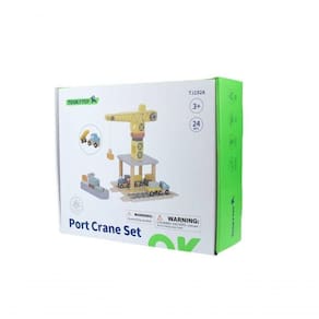 Este conjunto apresenta um guindaste de madeira trabalhado como peça central, pronto para carregar e descarregar carga. Ao lado do guindaste, você encontrará um trem em miniatura, um caminhão, um trilho, um navio e contêineres, todos projetados para criar uma cena portuária envolvente que desperta a imaginação.