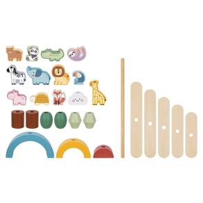Manipular as peças, equilibrar os animais nas estruturas e construir torres requer coordenação motora fina, contribuindo para o desenvolvimento das habilidades motoras das crianças. Enquanto brincam, as crianças podem aprender sobre equilíbrio, estabilidade e noções básicas de física de forma prática e divertida