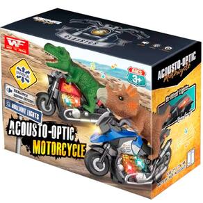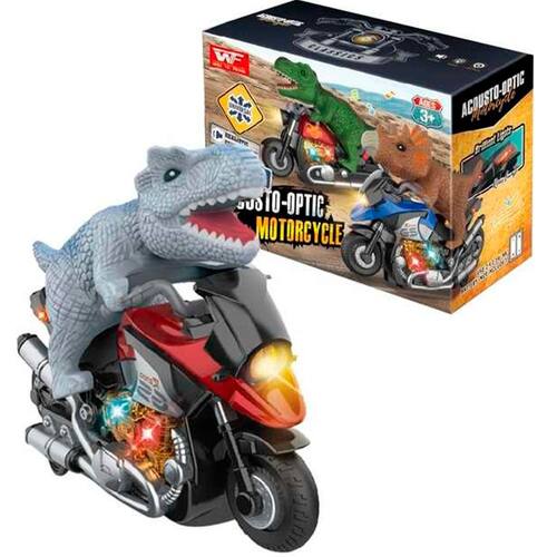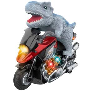 Brinquedo Dinossauro Motoqueiro Bate e Volta Som Luz À Pilha -