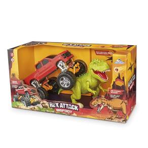 Uau... Que legal. As criançadas vão adorar esse brinquedo de dino rex attack bigfoot. Um dinossauro rex incrivelmente articulado, sua boca é acionada quando é abaixada, a brincadeira fica ainda mais real. E para completar, acompanha um carro bigfoot com detalhes incríveis e uma roda super cromada, com esse carro o t-rex nunca irá te pegar. Nesta brincadeira você deve tentar capturar essa criatura furiosa. O dinossauro é articulado e possui movimento mecânico de mordida, é baixar a cabeça que ele abocanha tudo o que vê pela frente.