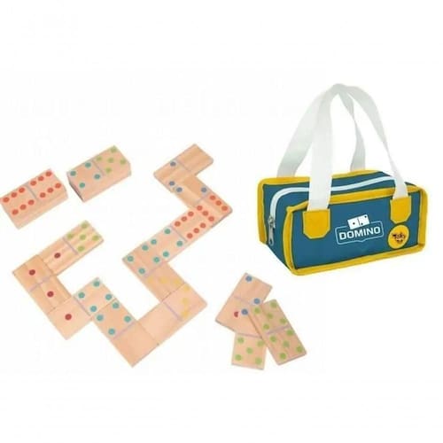 O Dominó é como o tradicional jogo familiar, mas agora em tamanho maior e cores vivas. O dominó é uma ótima maneira de ensinar números às crianças ou empilhá-los / alinhá-los e empurrá-los para o efeito dominó. Crianças e adultos podem desfrutar deste jogo no conforto de sua casa, no quintal, no parque ou em qualquer reunião social. Feito com madeira de pinho. Suave ao toque.