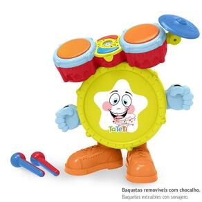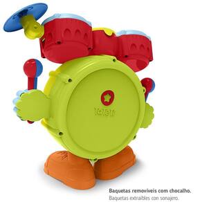 Chame a família para a sala e preparem-se para os estímulos do desenvolvimento da expressão rítmica, melódica e criativa. O Baby Batera vem com luzes e som que imita uma bateria de verdade. Para dar um show no mundo do Faz de Conta, brincar de tocar os tambores e o prato com as mãos e desenvolver coordenação motora fina.