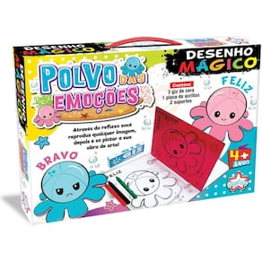 Desenho Mágico Polvo das Emoções tráz a brincadeira de desenhar vinculada ao personagem que auxilia a criança a externar suas emoções e sentimentos.