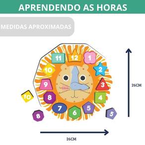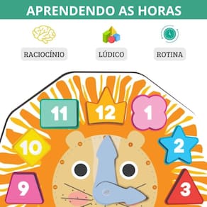 Características Principais: Segurança e Qualidade: Comprometidos com a segurança, garantimos que nosso Relógio Educativo é totalmente seguro para crianças a partir de 3 anos, cumprindo com os mais altos padrões de qualidade. Material: Feito com madeira de 9 mm, o relógio de encaixe é resistente, seguro e possui peças coloridas de fácil manipulação para as pequenas mãos infantis. Design Inovador: Com um adorável leãozinho no centro, este brinquedo inclui 02 ponteiros móveis para ensinar as horas e suportes traseiros para uma inclinação ideal, enriquecendo a experiência de aprendizado. Benefícios Educacionais: Este brinquedo promove habilidades essenciais para o desenvolvimento, incluindo coordenação motora fina, coordenação olho-mão, e ajuda a organizar a rotina diária das crianças, incentivando a independência e o autoaprendizado.
