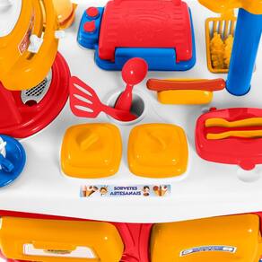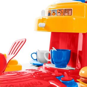 Itens Inclusos: 01 Lanchonete; 01 Máquina de Café e Suco; 02 Copos; 02 Xícaras; 02 Pires; 02 Colheres; 01 Hambúrguer; 01 Queijo; 02 Cachorros Quentes; 02 Porções de Batata Frita; 02 Sorvetes com Suporte; 01 Tubo Catchup; 01 Tubo Mostarda; 01 Fritadeira; 01 Tostadeira; 01 Espatula; 01 Colher de Sorvete; 01 Pegador; 01 Manual de Instruções.