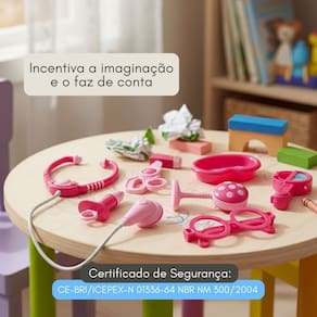 A Maleta Médico Infantil Pakitoys é perfeita para crianças que adoram brincar de cuidar, examinar e se transformar em verdadeiros(as) doutores(as). Compacta, leve e super prática de carregar, ela acompanha os pequenos em qualquer lugar: na casa dos amigos, no parque, na escola ou em viagens. Onde a imaginação vai, a maleta vai junto!