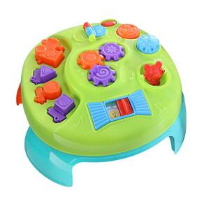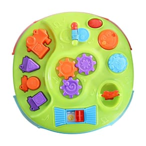 Com cores vibrantes e diversas atividades interativas como peças para encaixar, rodar e abrir, a mesa é projetada para estimular a criatividade e o desenvolvimento cognitivo das crianças.