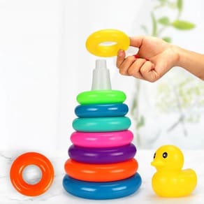 Aprendizado Divertido: As crianças podem empilhar, encaixar e manipular as argolas de várias maneiras, ajudando no reconhecimento de formas e desenvolvimento de habilidades motoras finas.