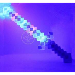 Brinquedo espada pixel minecraft 58cm som e luz - azul nº32 A espada mede 58cm, possui uma luz interna que brilha e um efeito sonoro ao ser acionado o botão existe na espada.