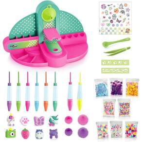 Mais de 150 acessórios inclusos: glitter, contas coloridas, pompons, pingentes, adesivos, letras e muito mais