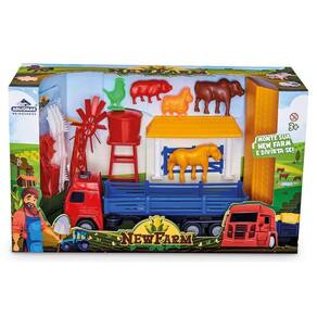 A new farm da adijomar brinquedos é a mais nova sensação entre as crianças permitindo maior interação e criatividade entre elas ao simularem a construção e cuidados que uma fazenda e animais necessitam. A fazenda conta com 1 cercado 16 peças , porteira 4 peças , celeiro 10 peças , 1 caixa d água, 1 moinho de vento, 5 animais, 5 acessórios comedouros, baias e 1 caminhão new truck.