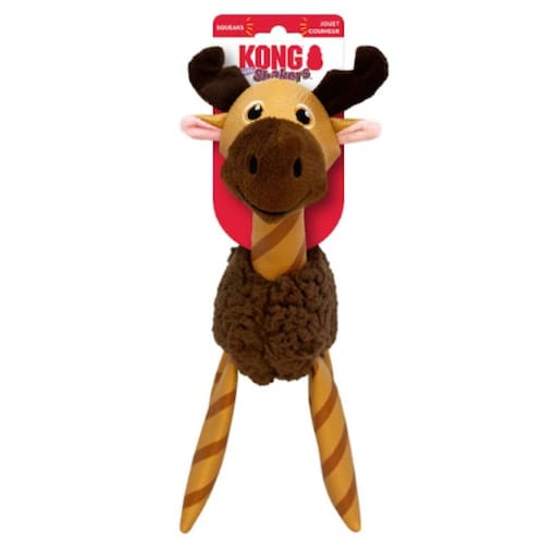 KONG Floofs Shakers um brinquedo leve, com tamanho razoável, que é convidativo para brincadeiras dentro de casa. Mesmo que atirado em algum objeto de valor, como é leve, dificilmente causará um prejuízo. Possui apito e estalidos que tornam a brincadeira ainda mais atrativa e duradoura. O seu corpo achatado o torna fácil agarrar por cães de qualquer tamanho.