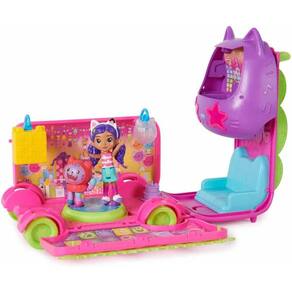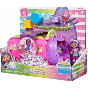 Brinquedo gabby's dollhouse ônibus de festa boneca playset Festa no ônibus o ônibus de festa da gabby é uma fábrica de diversão móvel abra a porta lateral e levante a cabine para cima, no modo cabine de dj, revelando uma pista de dança, um palco de karaokê giratório e sofá de festa.