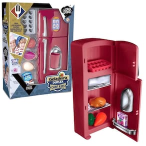 Com acessórios interativos para deixar a brincadeira completa Geladeira duplex igualzinha à de verdade Linha chef kids com itens em vermelho rubi e detalhes em prata cromado. Para brincar com toda a turma