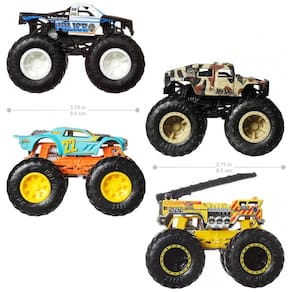 O conjunto temático de Monster Trucks da Hot Wheels com 4 mini caminhões em escala 1:64 está pronto para colidir e destruir em qualquer coleção com suas rodas gigantes e designs incríveis! Os quatro caminhões vêm em uma caixa de janela para exibir seus adesivos incríveis, e cada pacote fornece as estatísticas de cada caminhão, incluindo nome, tipo de caminhão, força, ataque exclusivo de colisão e motivação para uma ótima diversão de contar histórias! Também há um Monster Truck exclusivo em cada pacote! Um ótimo presente para crianças de 3 a 6 anos de idade. Cada pacote vendido separadamente, sujeito à disponibilidade. Cores e decorações podem variar. Os conjuntos de 4 Monster Trucks da Hot Wheels são perfeitos para colidir e destruir assim que são abertos. Os 4 personagens de Monster Trucks diferentes no pacote estão preparados para batalhas de frente, assim como no Hot Wheels Monster Trucks Live! Cada caminhão de brinquedo em escala 1:64 é do tamanho perfeito para levar a diversão da destruição para qualquer lugar, e com um Monster Truck exclusivo em cada 4Pack, crianças e colecionadores vão querer todos eles. Cada 4Pack vendido separadamente, sujeito à disponibilidade. A embalagem detalha as estatísticas dos caminhões, incluindo sua força, ataque de colisão, motivação e muito mais! Crianças de 3 a 6 anos vão adorar a diversão e aventura que os brinquedos Monster Trucks inspiram.