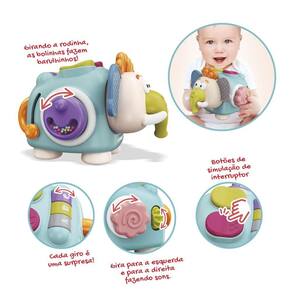 Com rodinhas cheias de bolinhas que fazem um som delicioso, botões coloridos para apertar, roldanas didáticas e partes flexíveis com texturas incríveis, esse mamute vai estimular cada toque e cada risada.