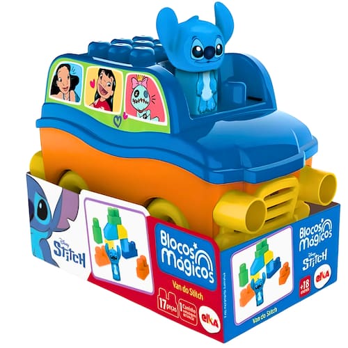 Descrição do produto : As aventuras nunca acabam com os Blocos Mágicos Van do Stitch! Você pode guardar as peças dentro da van e tirar a qualquer hora para brincar. São 17 peças para deixar a imaginação voar alto, criando cenários incríveis. Feitos com material resistente e colorido, garantem diversão sem fim! : Detalhes técnicos : Marca: Elka : Referência: 1310 : Idade recomendada: A partir de 18 Meses : Material: Plástico : Ean: 7896448113104 :