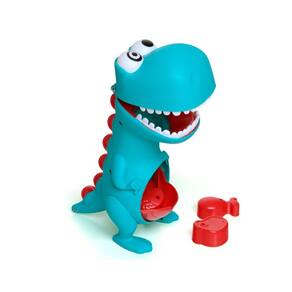 Dê comidinha para o Dino Papa tudo. Ele abre o bocão e engole o franguinho, o peixe e a carne direitinho!