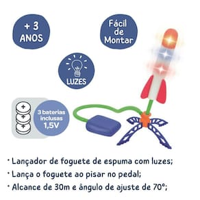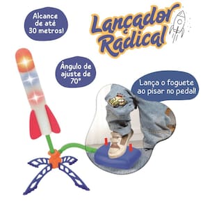 Prepare-se para uma brincadeira fora deste mundo com o Lançador Radical Esse incrível lançador de foguete vai transformar qualquer quintal ou parque em uma verdadeira base de lançamento. Com um foguete de espuma superleve que acende luzes coloridas ao voar, a diversão é garantida do começo ao fim É só posicionar o foguete na base, ajustar o ângulo de lançamento até 70 e... PISAR no pedal Pronto O foguete é lançado a até 30 metros de distância, criando aquele momento de empolgação que toda criança adora. Além de divertido, o Lançador Radical também estimula o movimento físico, a coordenação motora e a imaginação dos pequenos. Uma opção perfeita de presente para meninos e meninas a partir de 3 anos. Homologação Inmetro: IP-BRI-0336/2022-03 Marca: Não Informado Ean: 7899788407698