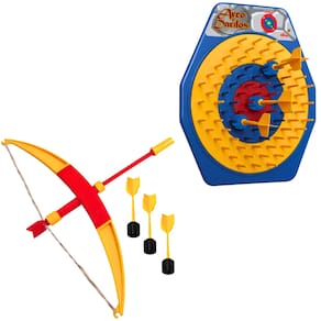 Descrição do produto : O jogo "Arco e Dardos" é uma opção divertida e dinâmica para crianças a partir de 6 anos. Com um suporte azul, alvos em cores vibrantes como amarelo e vermelho, e dardos combinando com o arco nas mesmas cores, a brincadeira estimula a coordenação motora e a concentração. O objetivo é simples: acertar o alvo para marcar mais pontos e vencer a partida. Ideal para momentos de lazer em família ou entre amigos, proporciona entretenimento ativo e saudável para os pequenos. :