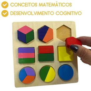 Com peças coloridas de diferentes formas e tamanhos, as crianças exploram conceitos de frações e geometria de forma prática e lúdica. Ideal para desenvolver o raciocínio lógico, a coordenação motora fina e a compreensão matemática, é uma ferramenta excelente para o aprendizado interativo.