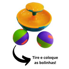 Pião estilo "João Bobo". Contando com 2 bolinhas em seu interior, basta apenas colocá-lo em uma superficie reta e girá-lo, fazendo com que as bolinhas ptoduzam sons de chocalho. Seu bebê vai adorar!
