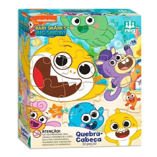 Esse lindo Quebra Cabeça com cores vibrantes e peças gigantes é o lançamento da Nig Brinquedos que trazemos em primeira mão. Diretamente das telinhas, o quebra cabeça traz uma figura da turminha mais divertida no fundo do mar, BABY SHARK. Formado por peças grandes e de madeira. Não perca tempo e garanta já a diversão dos pequenos