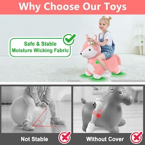 iPlay, iLearn Bouncy Pals Pink Fox - ?Hora de deixar os animais sair?Seus filhos vão adorar este amigo inflável! Basta subir, pegar as orelhas longas e pronto! Adequado para brincadeiras internas e externas. - ?Habilidades motoras?Ao agarrar as orelhas e andar na raposa, as crianças pequenas podem desenvolver suas habilidades motoras, melhorar o equilíbrio, fortalecer os músculos e melhorar o desenvolvimento do cérebro. - ?Fácil de inflar?Retire o plugue branco inserido (rolha de ar) do orifício na barriga; insira a ponta da bomba e encha a tremonha para um tamanho adequado e, em seguida, substitua o plugue branco no orifício rapidamente. - ?Macio e seguro?A Hopper Fox é coberta com um pano de pelúcia macio, garantindo zero atrito na pele delicada de seus filhos. As quatro pernas resistentes e um design de baixa gravidade central o tornam mais seguro. - ?Escolha de presente?Este passeio inflável na raposa é um ótimo presente de aniversário ou presente de Natal para meninas, crianças pequenas e pré-escolares. Também é um bom companheiro no caminho do crescimento das crianças.
