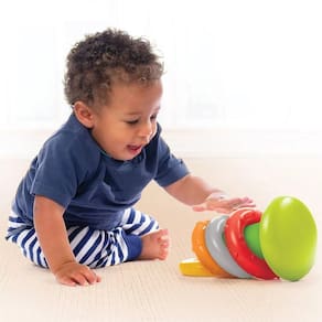 Brinquedo Interativo Argolas de empilhar - Infantino A Infantino é a marca de produtos infantis, que traz uma linha completa de brinquedos interativos que acompanham o desenvolvimento do bebê As Argolas Infantino de empilhar, auxiliam no desenvolvimento das habilidades motoras dos pequenos, além de trabalhar também habilidades como conhecimentos de formas, e aprendizagem de cores. São seis anéis coloridos e divertidos para o bebê segurar, explorar e encaixar A brincadeira de empilhar ajuda seu bebê a desenvolver a coordenação motora das mãos e dos olhos e ensina o conceito de tamanho relativo, à medida ele aprende a classificar e empilhar do maior para o menor