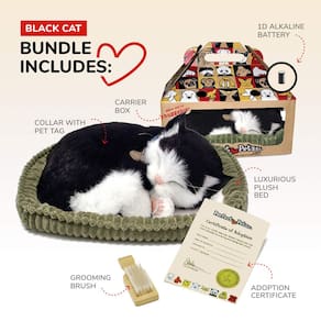 Petzzz autêntico gatinho de pelo curto preto e branco, realista, brinquedo interativo de pelúcia realista, animais de estimação respiradores, gato de estimação de companhia com pele sintética 100% - Oferece experiência real de dono de animais de estimação – Divirta-se com seu animal de estimação realista sem ser mordido ou arranhado. O gatinho de pelo curto preto e branco incorpora nosso elemento patenteado de "respiração" para trazer sua experiência realista de ter animais de estimação a um novo nível. Cada Petzzz mede aproximadamente 25 cm C x 19 cm L x 8 cm A. - Alternativa sem complicações para animais de estimação de verdade – Aproveite a conveniência e o carinho de ter seu próprio animal de estimação sem complicações e despesas. Chega de refeições bagunçadas, pulgas prejudiciais, limpeza de areia e viagens caras ao veterinário. - Companhia relaxante para qualquer idade – Eles são companheiros maravilhosos para idosos e crianças, proporcionando uma experiência realista e relaxante de ter animais de estimação. - Pêlo 100% SINTÉTICO NÃO CAUSA HIPERSENSIBILIDADES – O gatinho Petzzz autêntico de pelo curto preto e branco perfeito é feito de pelo sintético 100% feito à mão. Você não precisa se preocupar com reações alérgicas causadas por pelos reais de animais de estimação. - Interação duradoura, divertida e realista – oferece uma alternativa única à posse de animais de estimação. Nossos animais de estimação realistas oferecem o máximo de relaxamento e prazer. Depois de ativá-los, eles respiram continuamente por até 2 meses.
