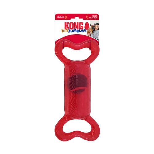 KONG JumblerTugé um brinquedo feito para brincadeiras interativas. As manoplas laterais servem para uma pegada fácil e firme. A bola de tênis aumenta a diversão. Perfeito para brincadeiras de chacoalhar e interativas como jogar e buscar, cabos de guerra leves, etc. Possui apito para estimular ainda mais o seu cão. Importante: Não é um brinquedo de mastigar. Designado a cães de mordida leve/moderada. Para cães de mordidas mais fortes, procure um brinquedo KONG de borracha. Não deixe com o cão. Use apenas com sua supervisão. Descontinue o uso caso esteja danificado.Importante: Destinado à cães de mordida leve/moderada. Para cães altamente destrutivos, recomendamos sempre brinquedos de KONG de borracha. Não deixe sozinho com o cão nem por um instante, a não ser que tenha certeza absoluta que ele não tentará destruí-lo. Não é indestrutível. Observe e monitore sempre o uso. Se o cão começar a roê-lo ou morder de forma a destruí-lo remova e ofereça novamente. Consulte um adestrador caso tenha dificuldades.Lavar apenas com água e detergente. A garantia não cobre destruição por parte do cão, apenas defeitos de fabricação.Composição: Borracha, apito e bola de tênis. Mesmo código do produto contém 3 cores. Azul, amarelo e vermelho.Tamanhos: md/lg:32cm x 14cm