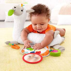 A lhama Amigável da Fisher-Price é uma amiga de brincadeiras fofinha para seu bebê em crescimento. A almofada macia dá suporte ao seu bebê à medida que ele cresce, desde apoiar as costas a ajudar a levantar no momento de engatinhar e sentar para brincar em qualquer lugar. A amigável lhama vem com uma manta dupla face, com um bolso para colocar e tirar, e três brinquedos, incluindo um espelho que você pode prender à folha na boca da lhama ou no tapete! Seu pequeno explorador vai adorar descobrir todas as emocionantes atividades, sons e texturas desta aconchegante amiga lhama.