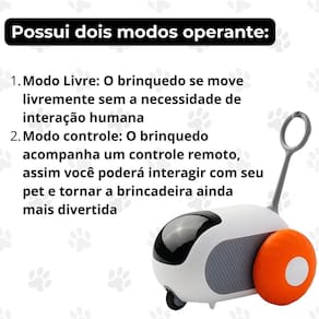 Equipado com controle remoto, o brinquedo permite que você controle os movimentos do rato de forma prática e divertida, possui também o modo automático aonde você não precisará interagir. A bateria recarregável garante que a diversão não acabe rapidamente, e o cabo carregador incluído facilita a recarga. Os acessórios atrativos que acompanham o produto aumentam ainda mais o interesse do seu gato, tornando cada sessão de brincadeira única.