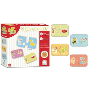 Nesse jogo a criança vai observar cada animal e encaixar a peça que corresponde à sua comidinha. Os pares são da mesma cor para auxiliar na tarefa. Contém 28 peças grandes de madeira reciclada, coloridas e resistentes. Estimula o raciocínio e a percepção visual. Novo Brinquedo Jogo de Encaixe Infantil O que eu como Da Nig Brinquedos 0411. Imagens meramente ilustrativas. Código de Barras: 7896200704113 Código de Referência: 0411 Marca: Nig Brinquedos Modelo: Jogo O que eu como Idade: +3 anos Medidas da Caixa: 23x06x23 cm aproximadamente Certificado: Inmetro Ce-Bri/Iqb 000202 NM 300/2002 Ocp 0006 Ficha técnica - Idioma: Português - É dobrável: Sim Ean: 07896200704113