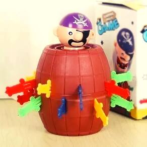 Um brinquedo muito conhecido e clássico que traz muita nostálgia. O pula pirata com barril, enfie as espadas no barril e veja se consegue fazer o pirata voar de lá. Perfeito para jogar e se divertir com familia e amigos.