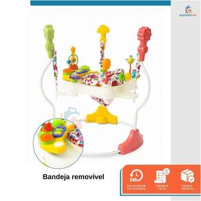 - Bandeja musical removível; - Mesa de atividades equipada com brinquedos removíveis; - Assento giratório; - Possui a função jumper para a criança pular; - Regulagem de altura em 3 posições.