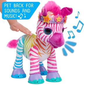 Just Play FurReal Zenya My Rainbow Zebra, brinquedos infantis para maiores de 4 anos — Inclui: 1 zebra de brinquedo interativo, 1 pincel de cupcake e 20 acessórios de estilo. - Lifelike Zebra Love: o brinquedo interativo FurReal Zenya My Rainbow Zebra traz sons do dia a noite, música, luzes e 20 acessórios para fingir. - Diversão selvagem para todos: esta zebra de 14 polegadas de altura tem listras de arco-íris, pernas dobráveis, traços faciais animados, bochechas iluminadas e efeitos sonoros. - Inspire o jogo imaginativo: projetado para fingir, o Zenya pode ser alternado dos modos diurno para noturno. - Brincadeira o dia todo: Zenya apresenta mais de 80 reações diferentes quando as crianças acariciam sua cabeça, bochecha, queixo ou pressionam o botão nas costas. - Nighttime Cuddles: No modo noturno, Zenya ronca suavemente e, quando o botão nas costas é pressionado, toca música noturna por 5 minutos. - A zebra mais fofa: Zenya certamente será a favorita de qualquer coleção infantil de bichos de pelúcia e outros animais de estimação FurReal (cada um vendido separadamente). - Informações sobre a bateria: requer 4 pilhas AA (incluídas). - Comemore os momentos da vida: este brinquedo infantil interativo torna os aniversários e as celebrações a qualquer momento divertidos para crianças de 4 anos ou mais.