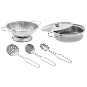 Diversão na cozinha, aprenda cozinhar brincando. Cozinhe pratos incríveis. Peças em inox e panelas com tampa. Chame seus amigos para diversão, além de pratos construir histórias.
