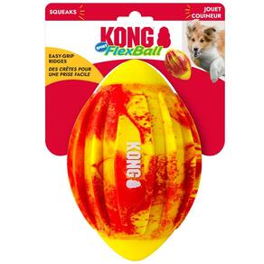 O KONG Flexball Sport Football é um brinquedo interativo projetado para cães que adoram correr e brincar. Com um formato de bola de futebol, este brinquedo oferece diversão e resistência, ideal para brincadeiras ativas.