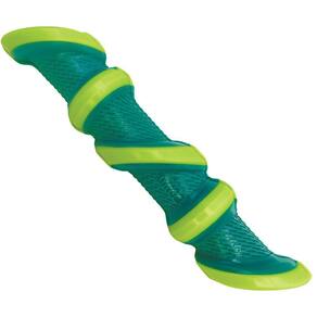 Possui grânulos internos que estimulam ainda mais, sendo irresistivelmente atraente para morder e brincar. Desafia a previsibilidade, incentivando o seu cão a perseguir e capturar a "presa". Os grânulos internos adicionam uma camada extra de atração, barulho de chocalho (ruído de grãos dentro do brinquedo) fazendo deste brinquedo uma opção prazerosa para morder e brincar.