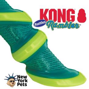 Ideal para cães com mordidas leves, Kong Rambler Rattlez convida os cães a brincar por muito mais tempo dentro e fora de casa.