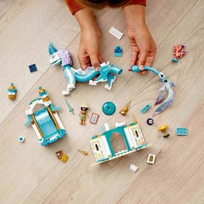 Um set aberto com Raya e Sisu da Disney. As crianças podem estender as aventuras do filme Raya e o Último Dragão da Disney enquanto revivem cenas ou contam novas histórias