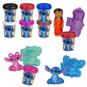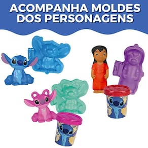 Conteúdo da Embalagem: 6 Potes de Massinha, 1 Rolo, 1 Tesoura, 1Espátula, 1 Molde do Stitch, 1 Molde da Angel e 1 Molde da Lilo